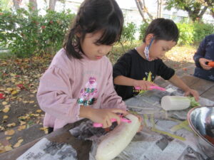そしてこちらの味噌はぞうぐみが年中ひつじ組の時に作った味噌です!解禁して豚汁を作りました。