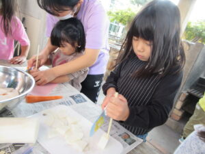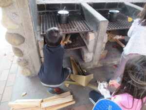 火起こしも自分たちでするのでマッチで火をつけるとか、薪の組み方はどうすれば火が継続してつくのか…試行錯誤しながら取り組んでます。