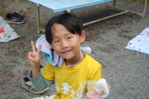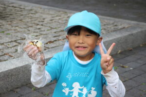 さぁ、お腹もすいてきたしお家の人が作ってくれたおにぎりを食べよう!!