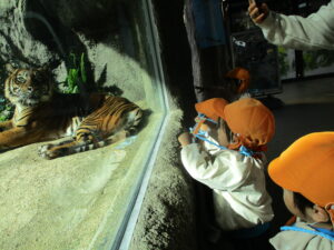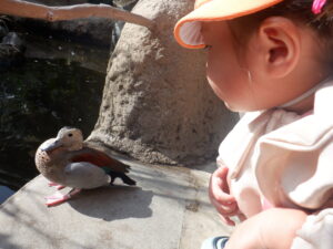 いろんな動物がいたね。トラはかっこいいし、ひつじは近くで見れたし、カメなんて、触れたよね!! カモに関してはこーんなに近くで見ても逃げなかったよね。
