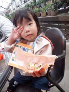 はい、そして待っていましたおべんとう!楽しみすぎて着いてからずっと『おにぎりまだ?』と言っている子どももいました!